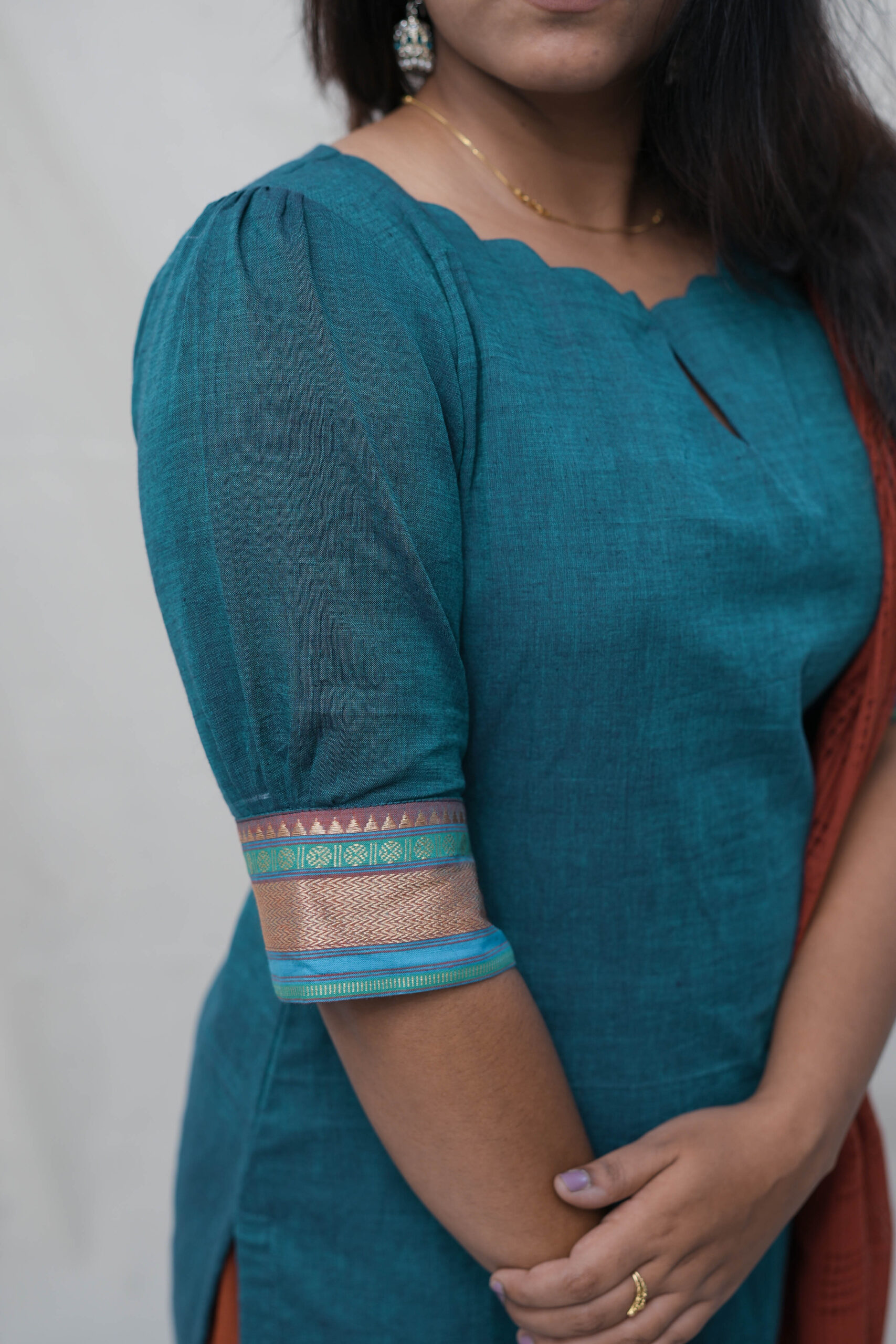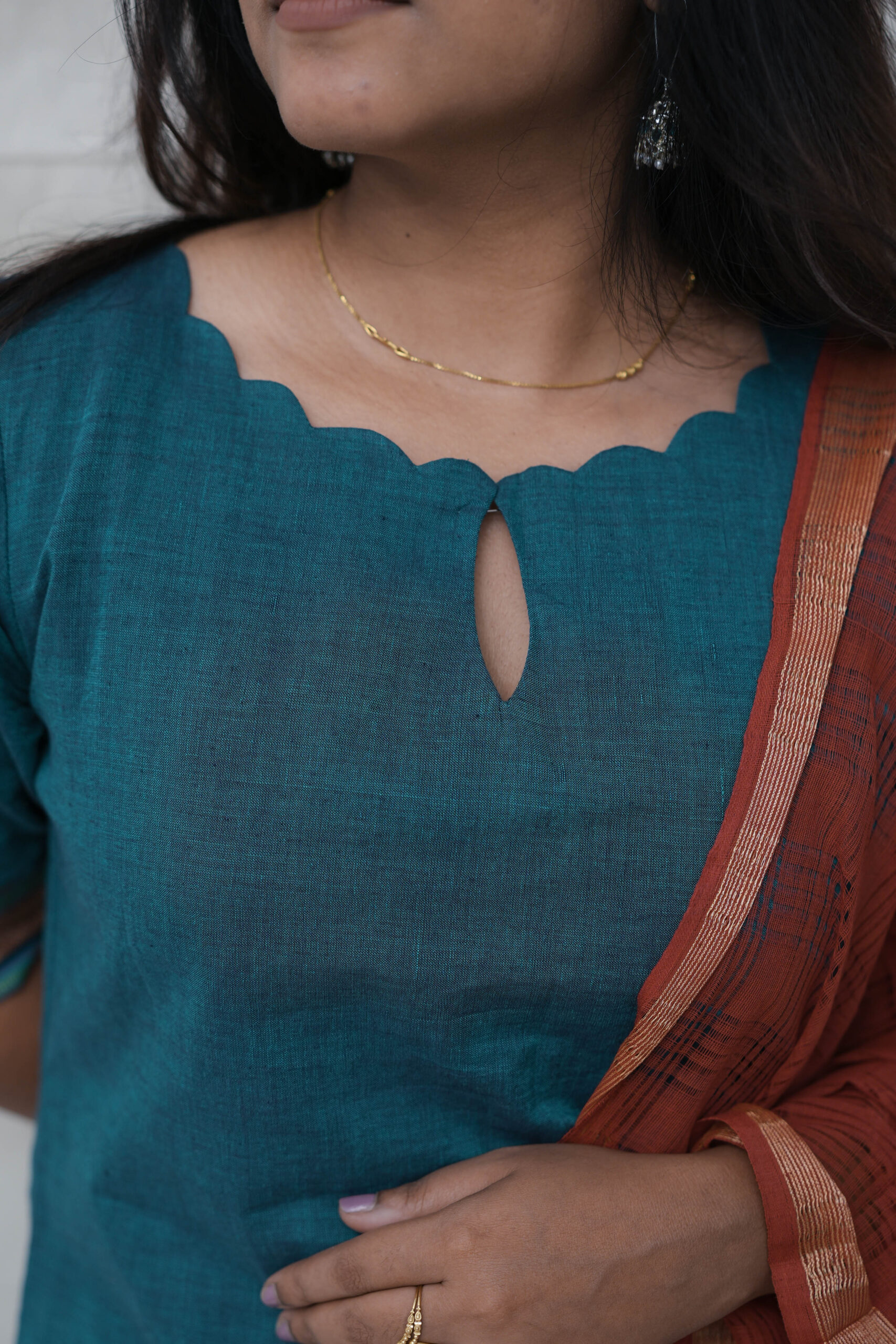 Immerse yourself in timeless elegance with this authentic South Indian cotton salwar suit, meticulously crafted to reflect traditional artistry. Woven from breathable, high-quality cotton, it offers unmatched comfort while showcasing regional craftsmanship through subtle patterns and classic tailoring. Perfect for both everyday grace and cultural occasions, this ensemble blends heritage and style in the most effortless way.