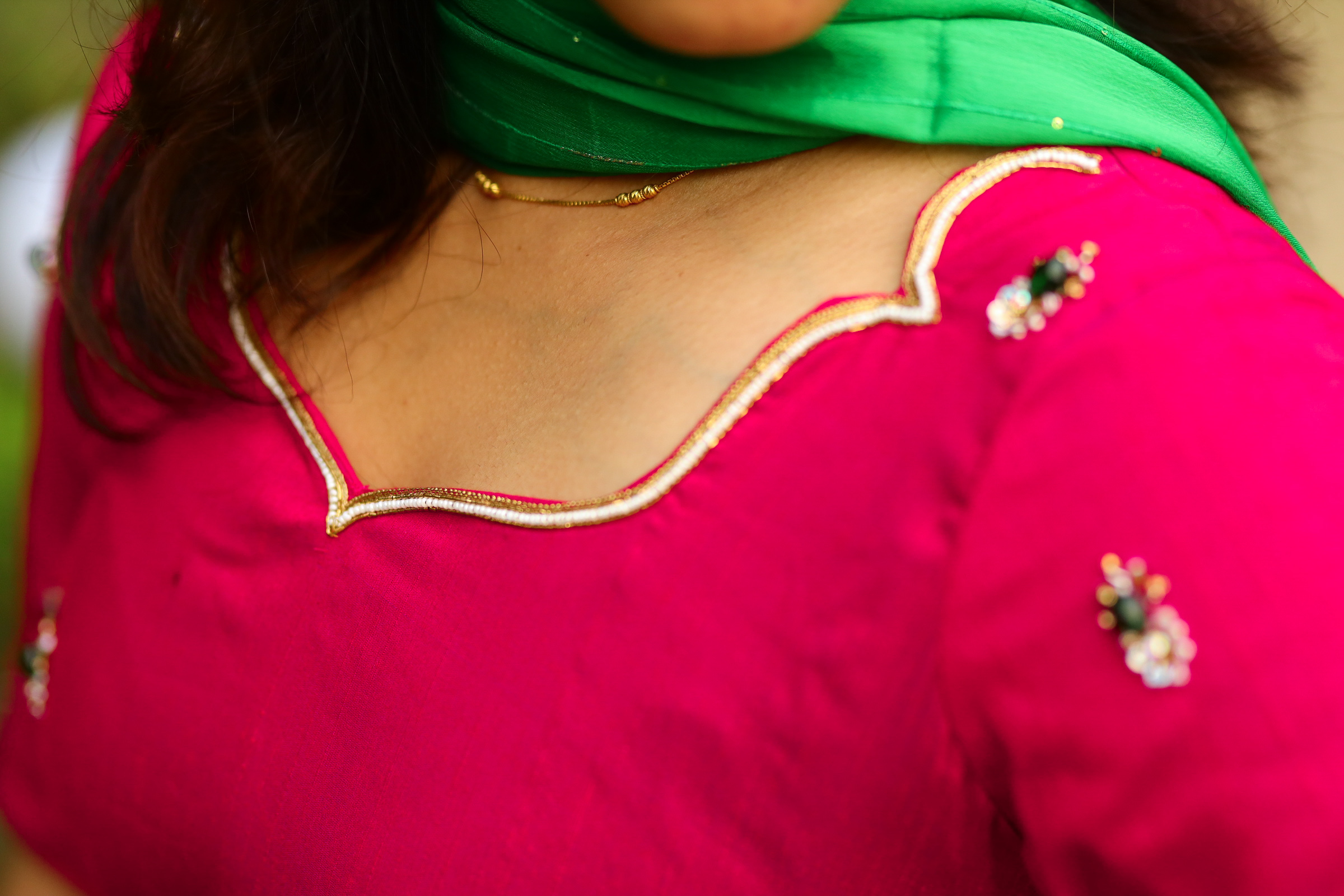 Dark pink and green hand work salwar suit