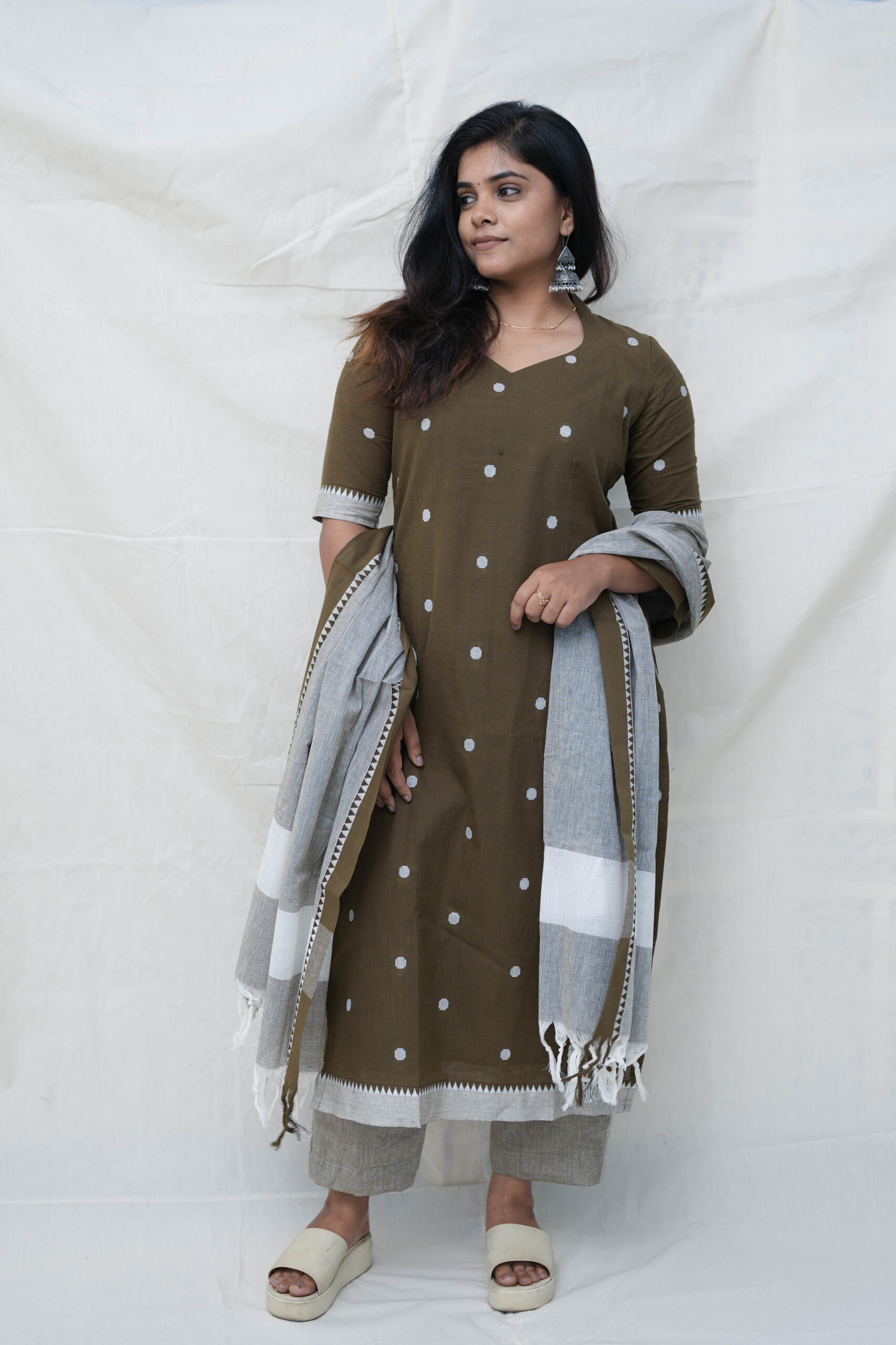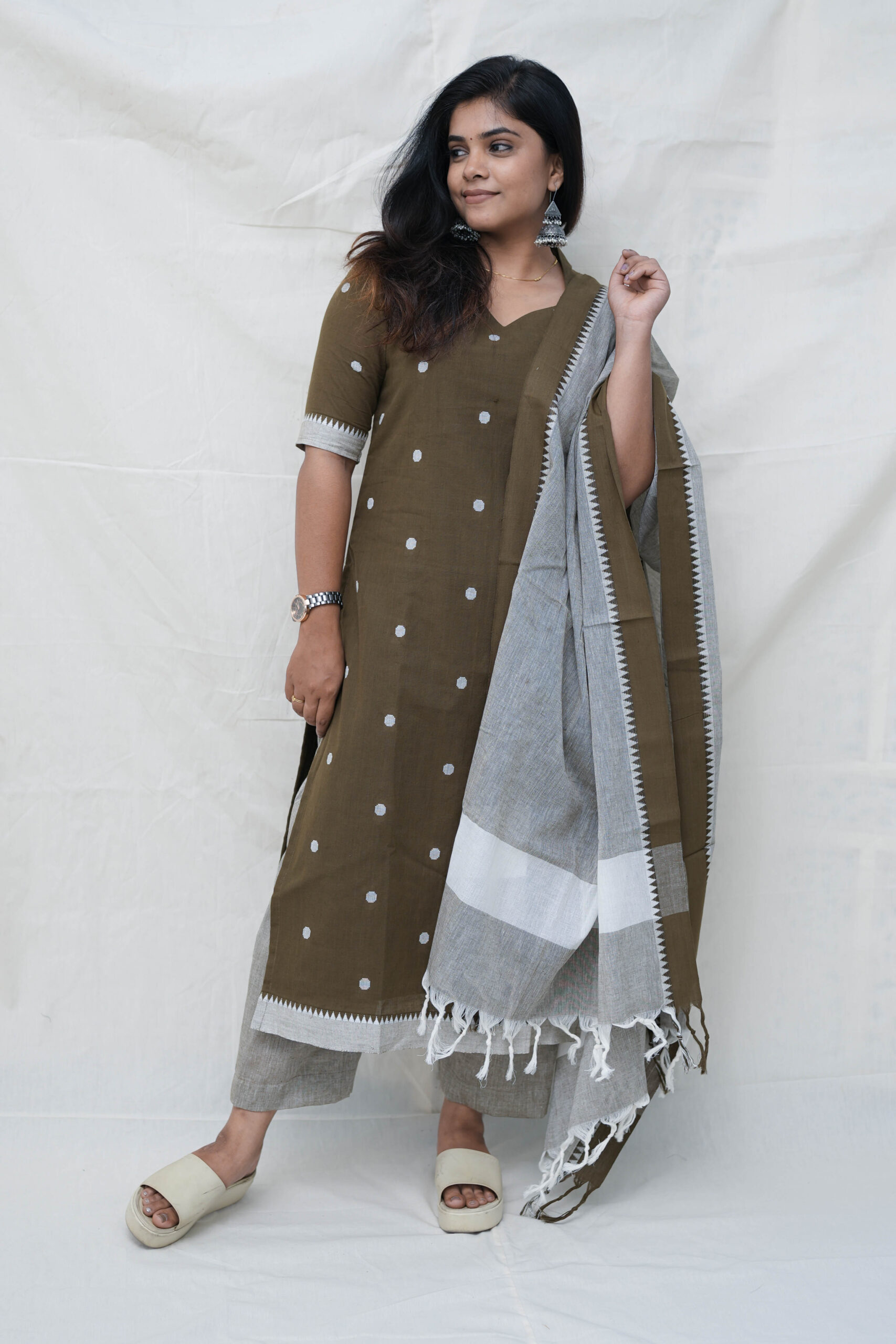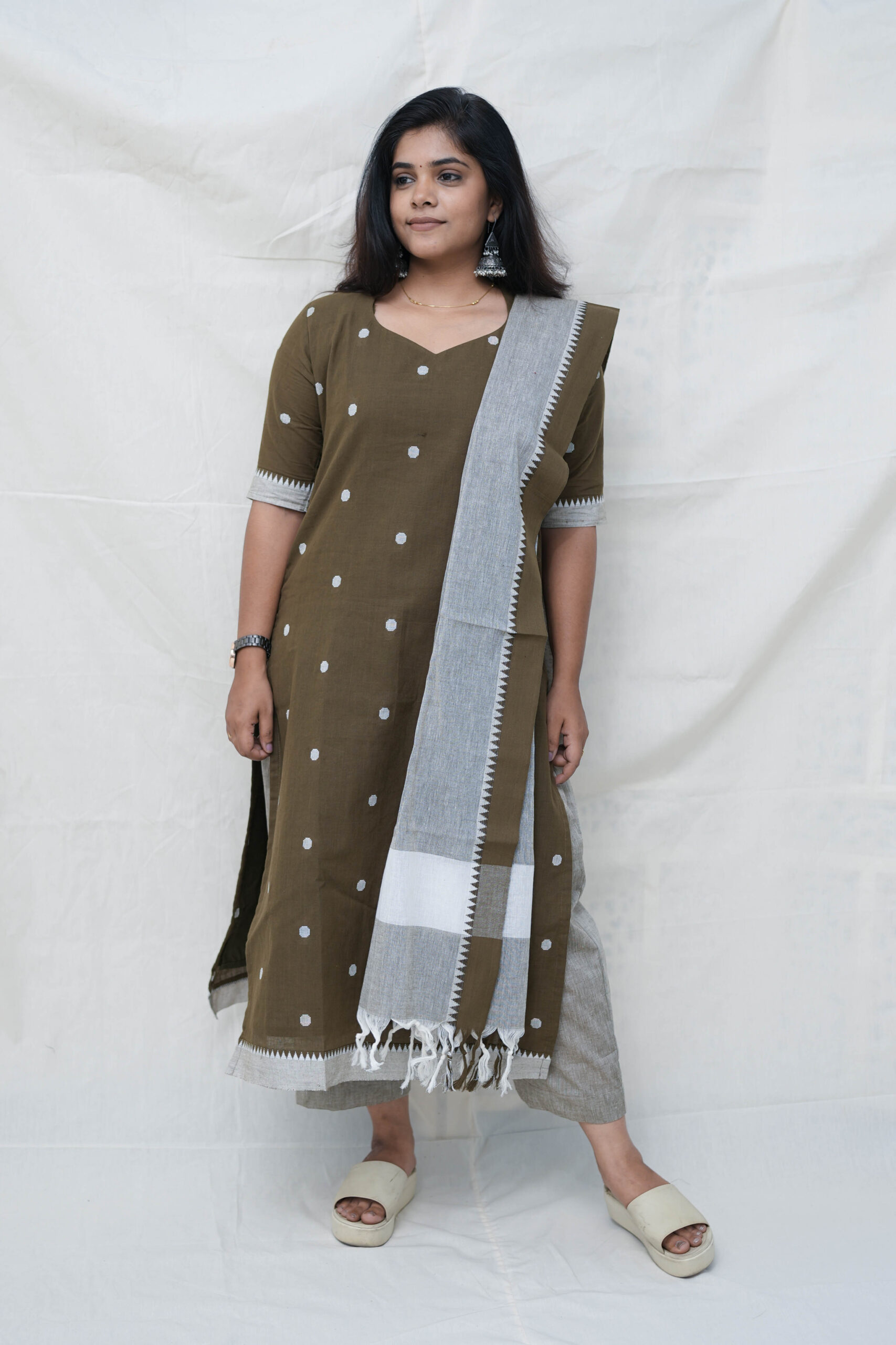 Immerse yourself in timeless elegance with this authentic South Indian cotton salwar suit, meticulously crafted to reflect traditional artistry. Woven from breathable, high-quality cotton, it offers unmatched comfort while showcasing regional craftsmanship through subtle patterns and classic tailoring. Perfect for both everyday grace and cultural occasions, this ensemble blends heritage and style in the most effortless way.