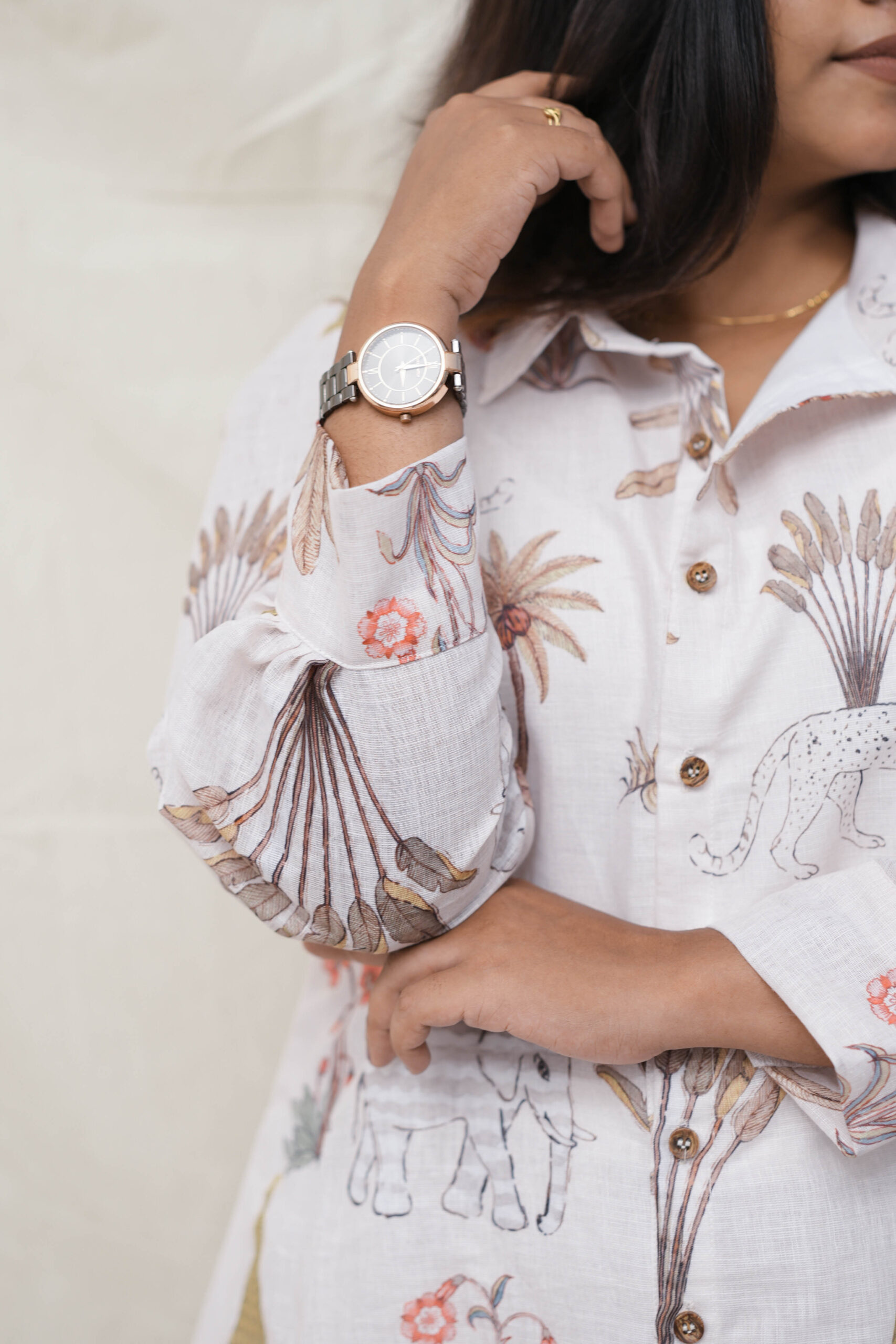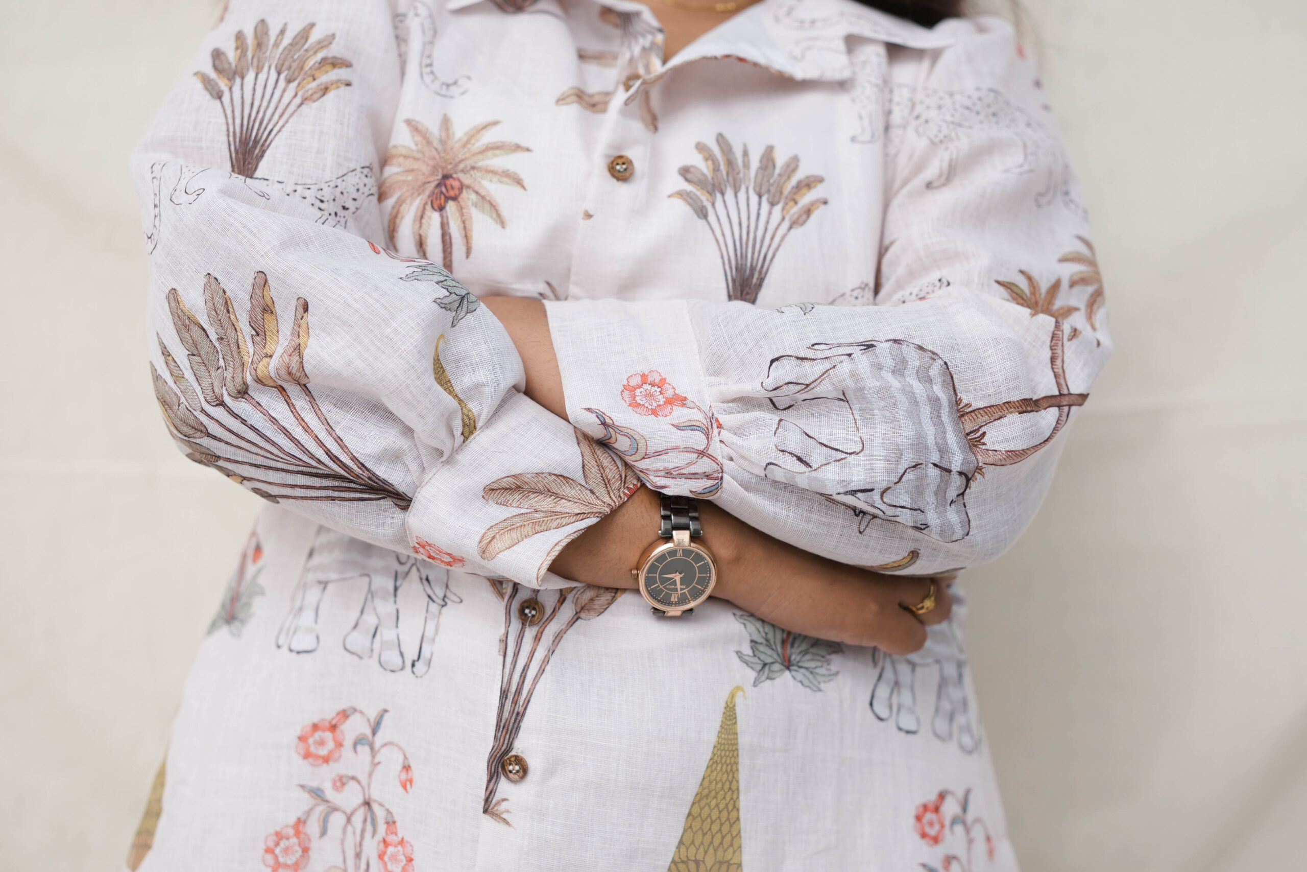 Step into nature’s elegance with this beautifully tailored A-line dress, inspired by the serenity of the forest. Crafted in soft, breathable fabric, it features a flowing silhouette that flatters every figure. The earthy color palette—rich greens, soft browns, and subtle neutrals—echoes the beauty of woodland landscapes, while delicate leafy motifs add a touch of organic charm. Perfect for outdoor gatherings, casual chic events, or simply channeling a natural vibe, this dress brings the calm and grace of the forest into your wardrobe.