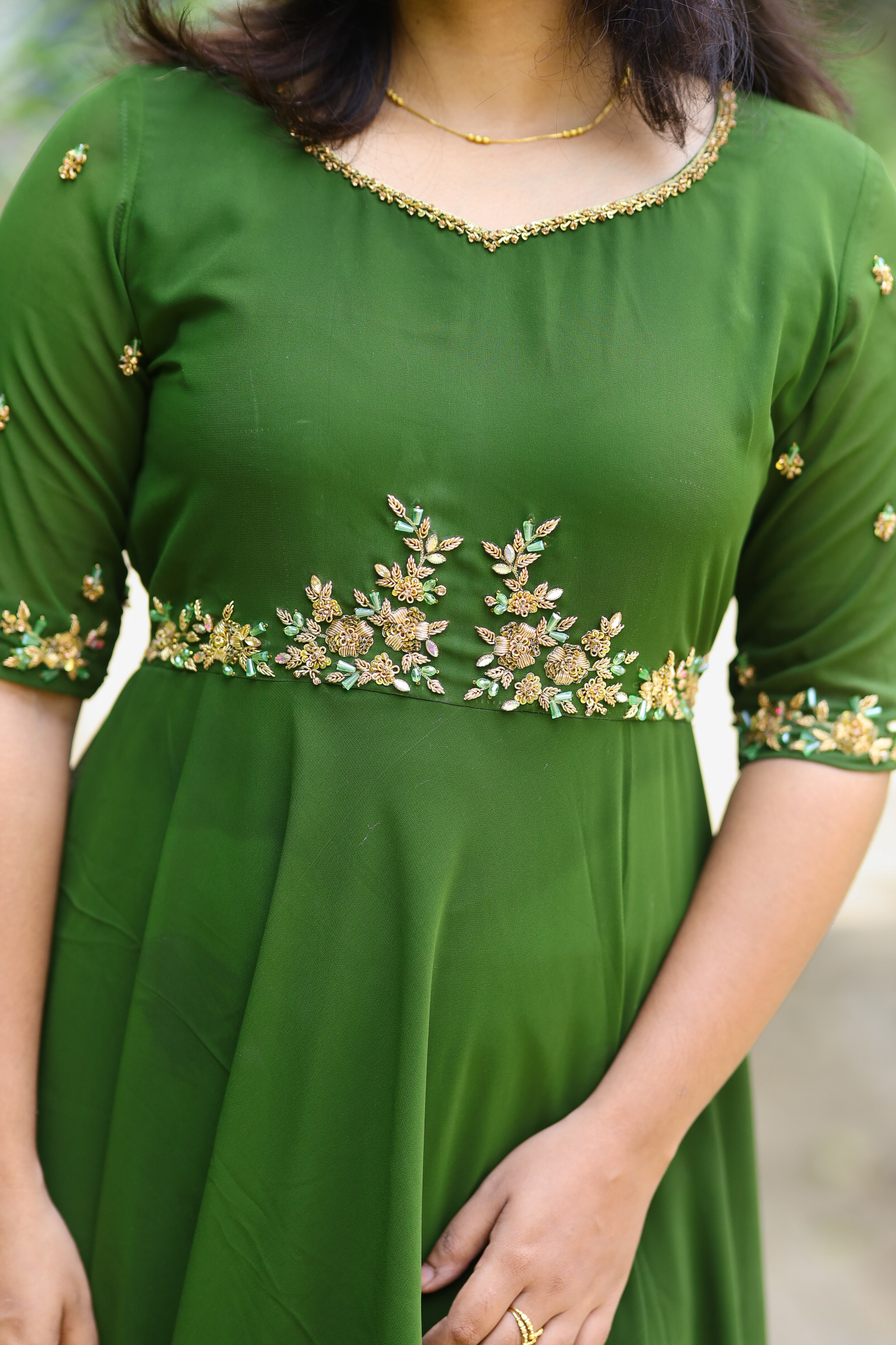 Be the first to review “Olive green hand work georgette gown” Cancel reply