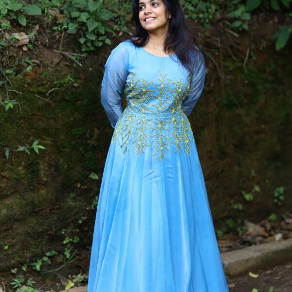 Stylish party co-ord set adorned with intricate hanging embellishments for a statement look.